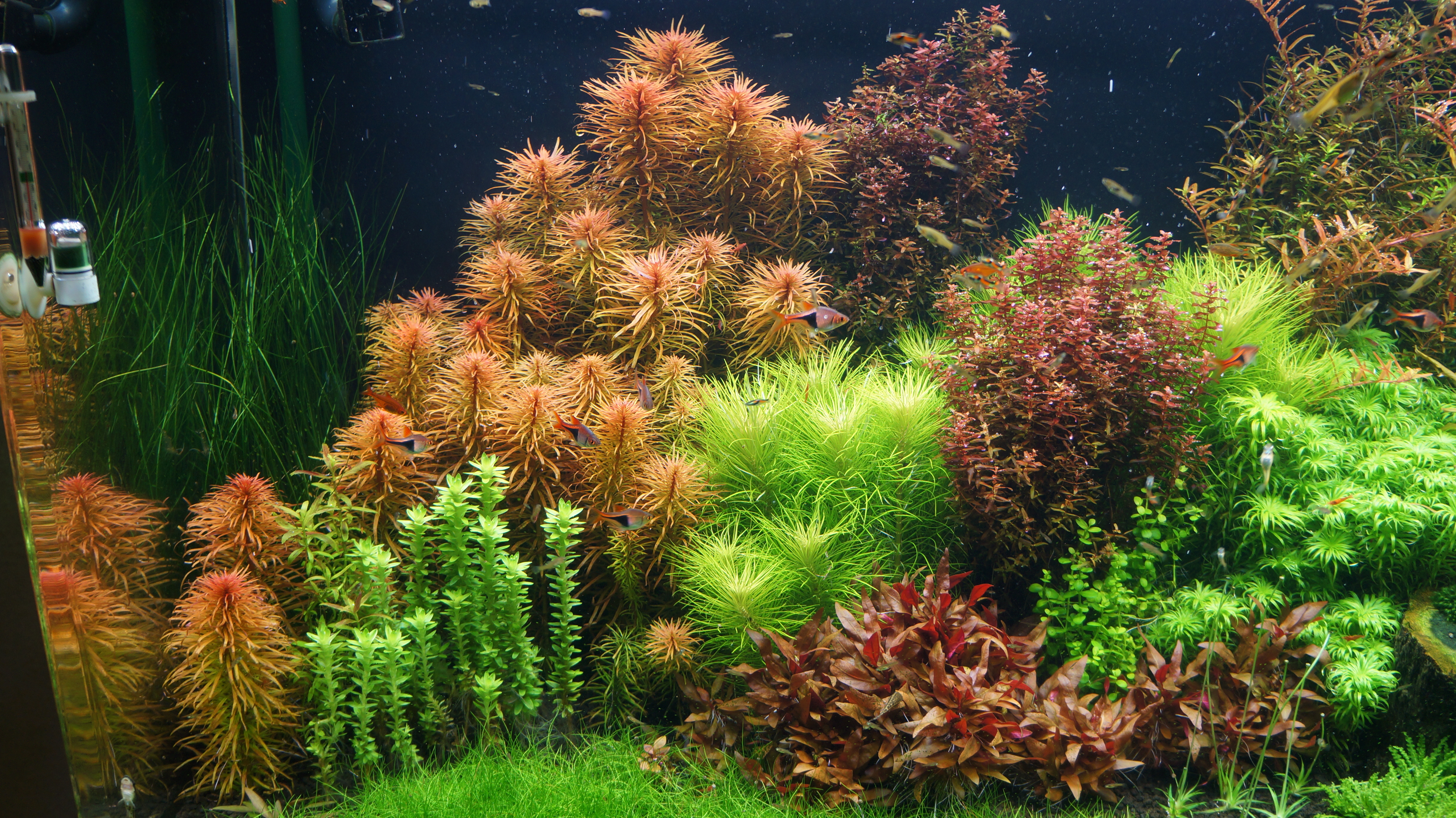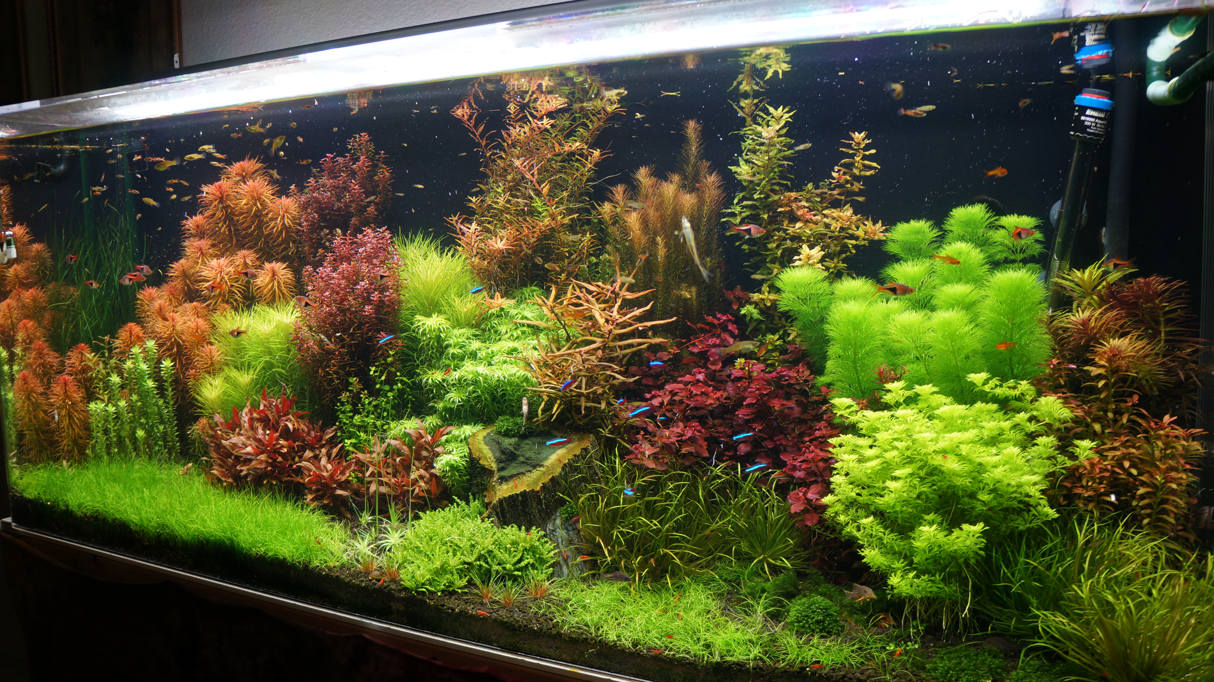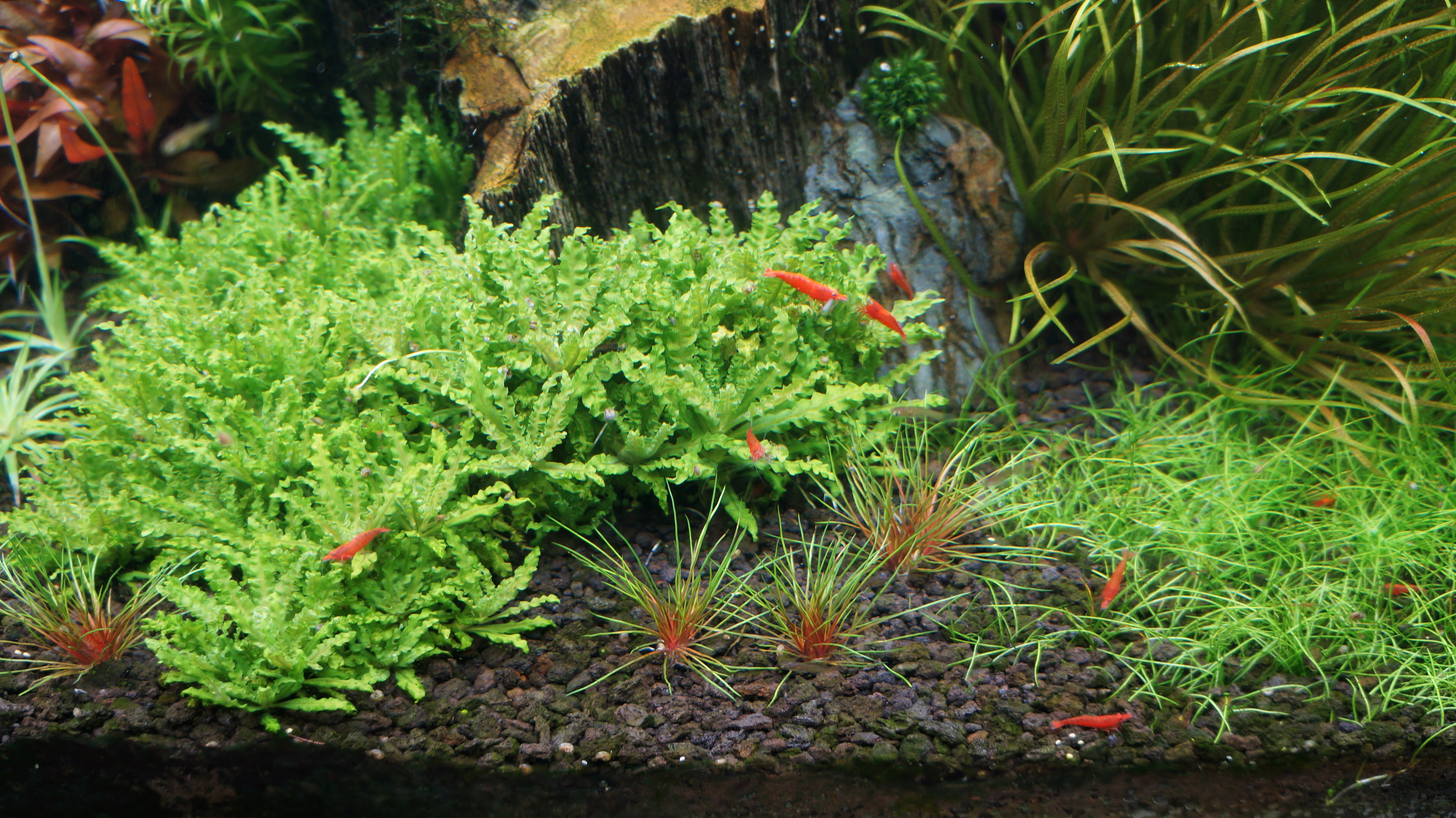 Flora (plants): glossostigma elatinoides, hydrocotyle s. japan, Vesicularia dubyana, fissidens fontanus, anubia nana ‘petite’, rottalla wallichii, rottalla colorata, echinodorus tenellus,